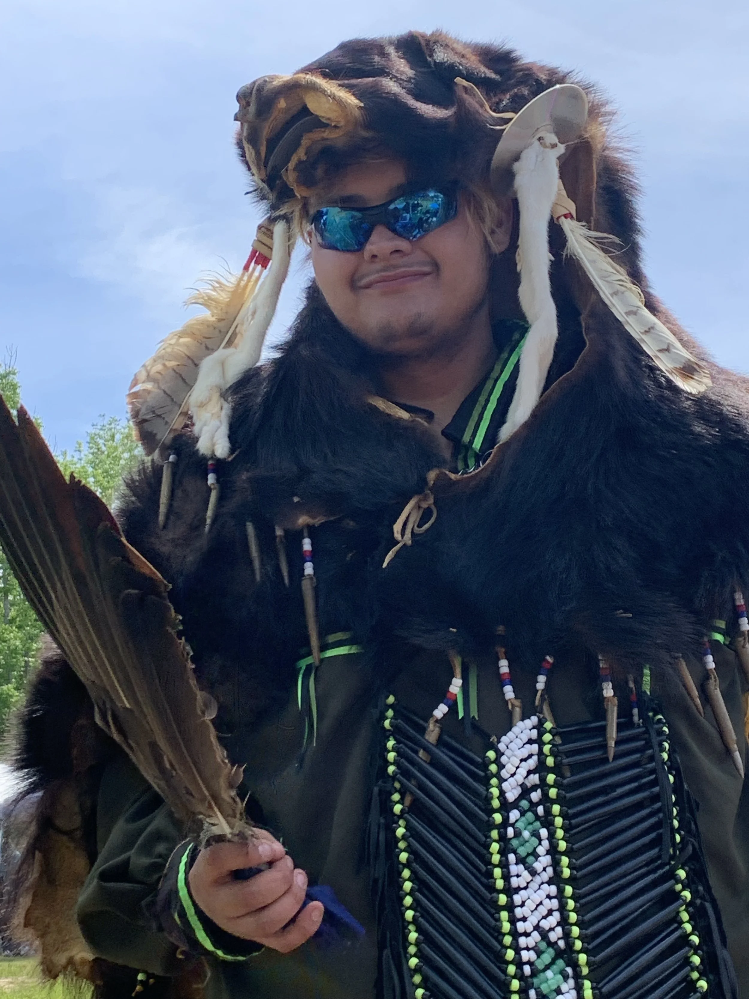Misaabe is of the Turtle clan and is a member of the Anishinaabe and Potawatomi nations. He is a member of Wasauksing First Nation.